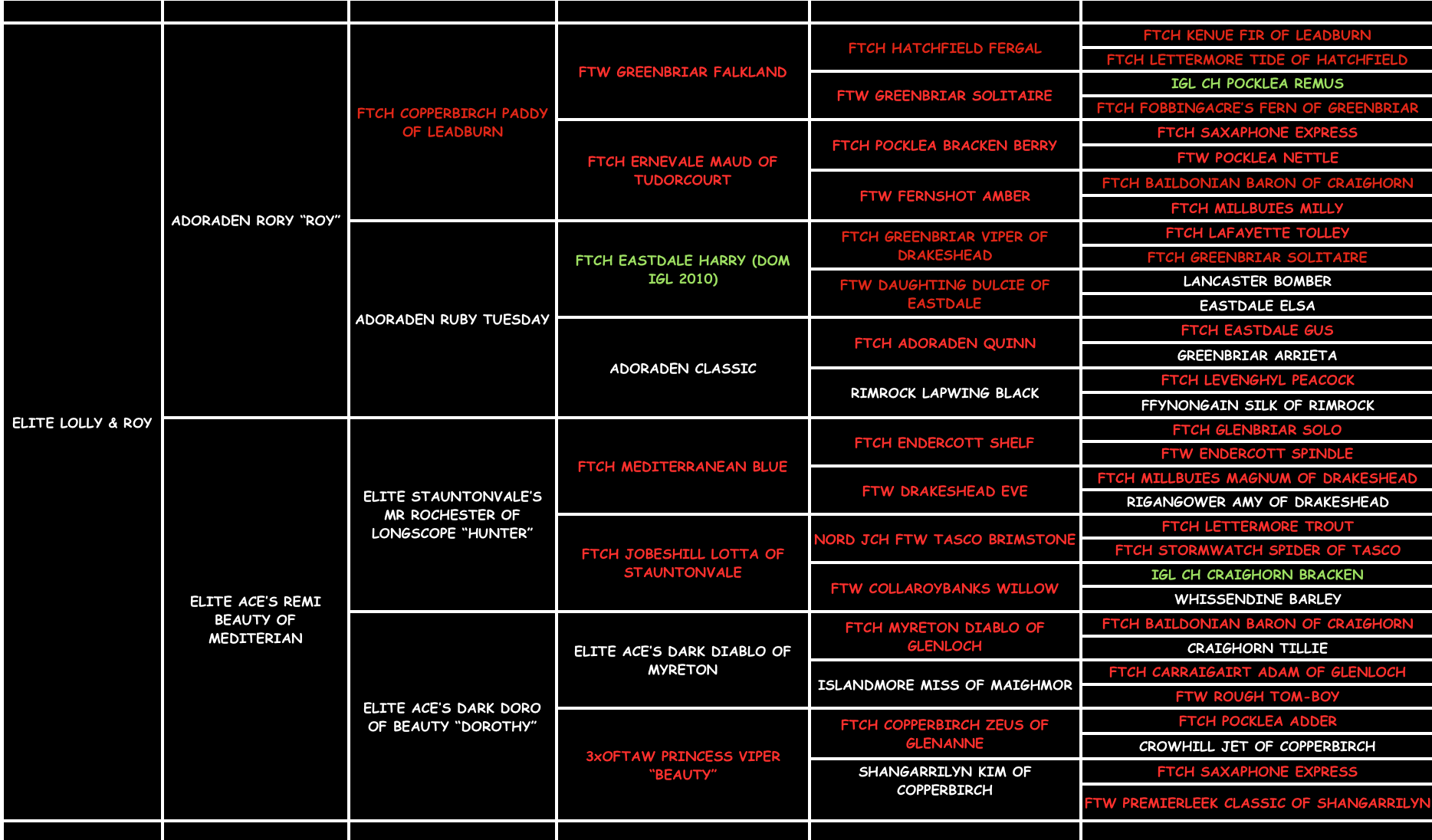 Sire: ELITE ADORADEN RORY OF SHIMNAVALE "Roy T"